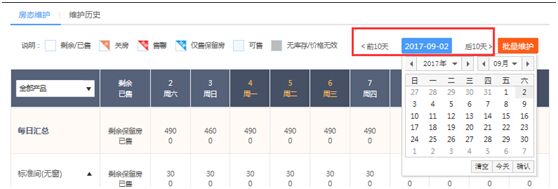 可选择右上角选择日期栏点击“前十天”“后十天”,或者选择日期进行操作。